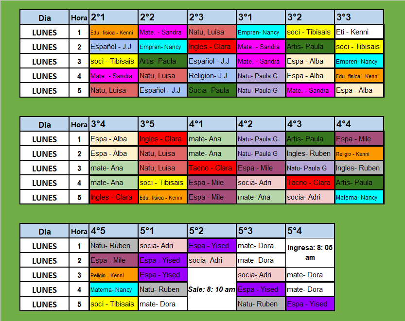 Horario para el lunes 26 de Enero (Primaria Sede principal)