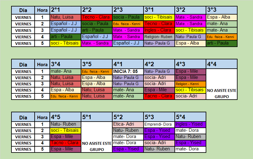 Horario para el Viernes 30 de enero (Primaria sede principal)