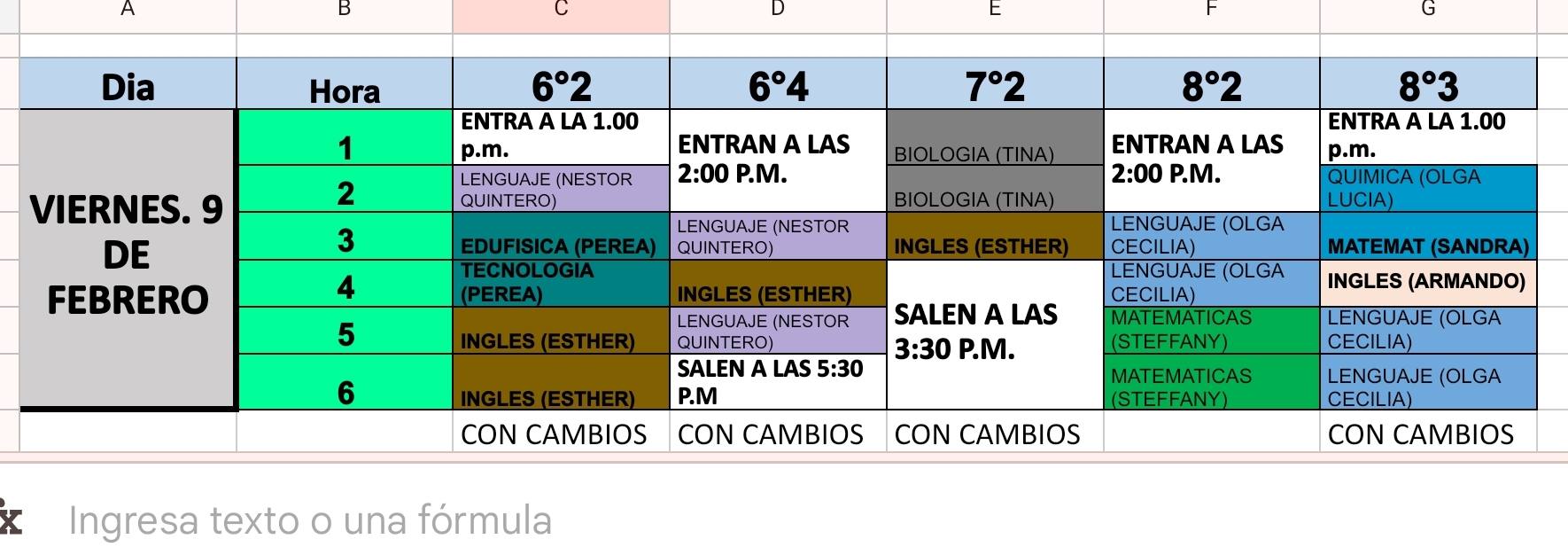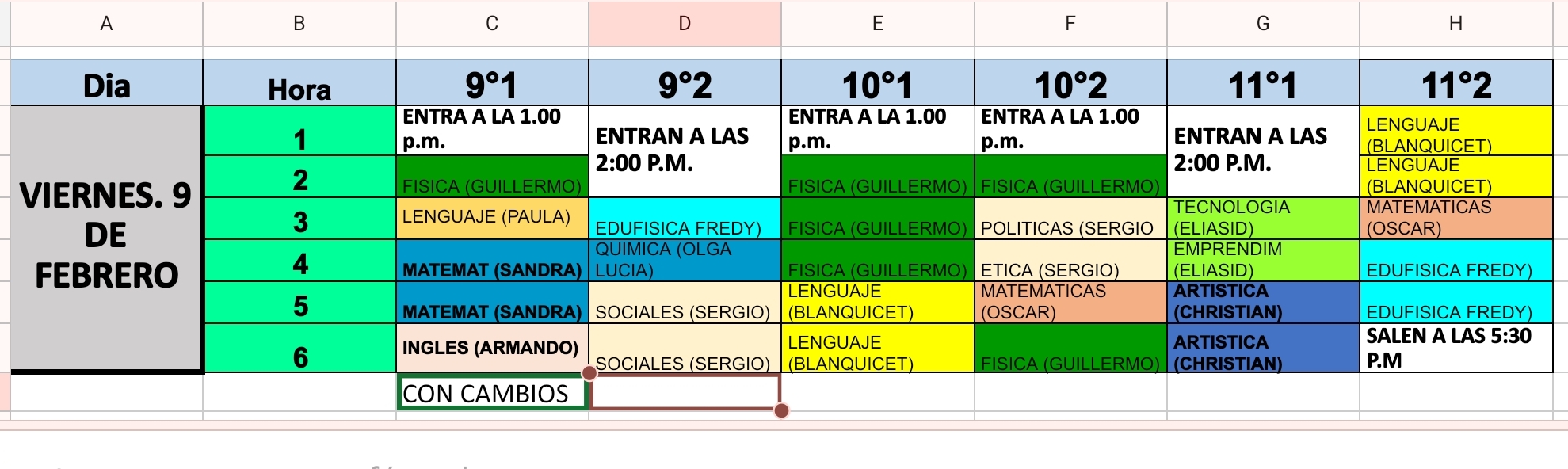 Novedades en el horario - 9 de febrero