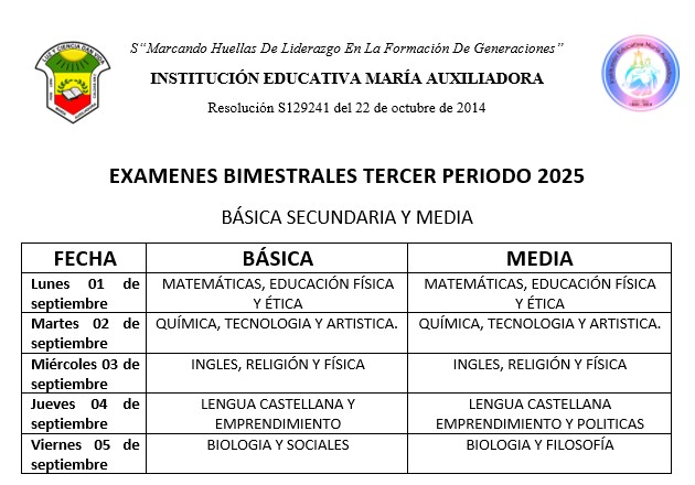 Programacion de Bimestrales 3er Periodo (Secundaria y Media) Artículo anterior: Agenda del 1 al 5 de Septiembre Anterior Artículo siguiente: Agenda del 25 al 30 de agosto Siguiente